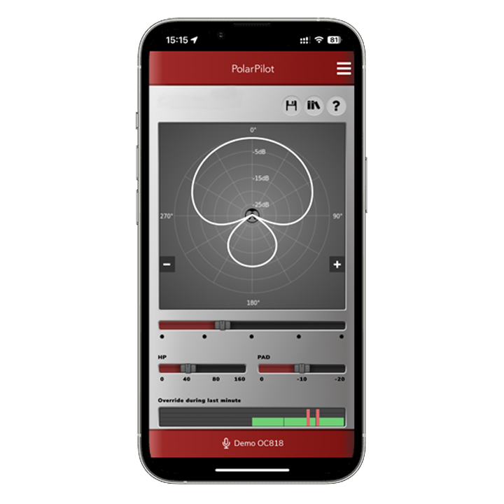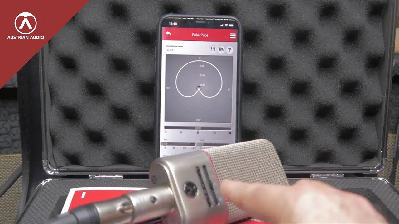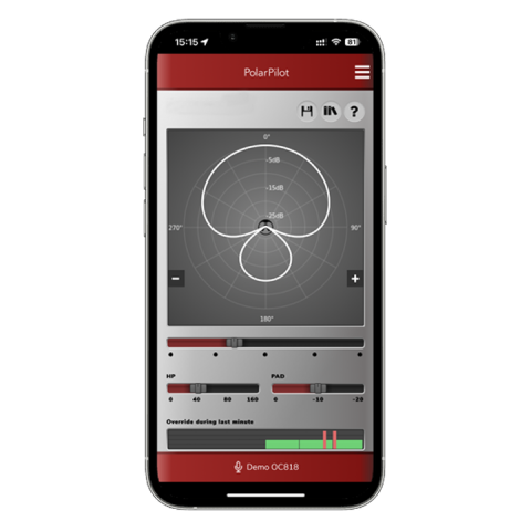 L'application Austrian Audio PolarPilot transforme votre smartphone (iOS ou Android) en une télécommande complète pour le microphone à condensateur à grand diaphragme OC818.